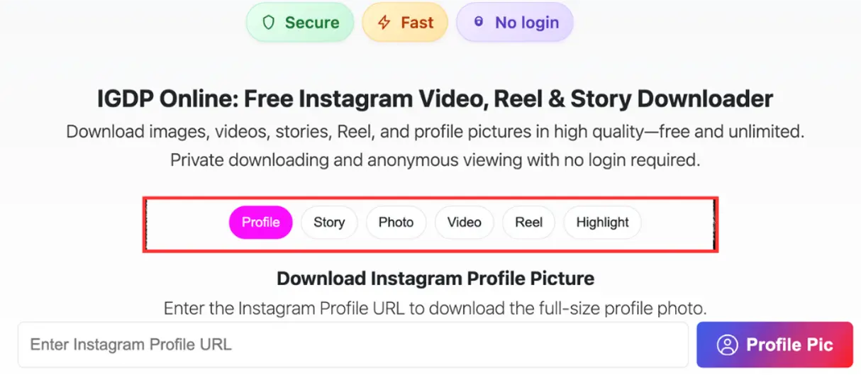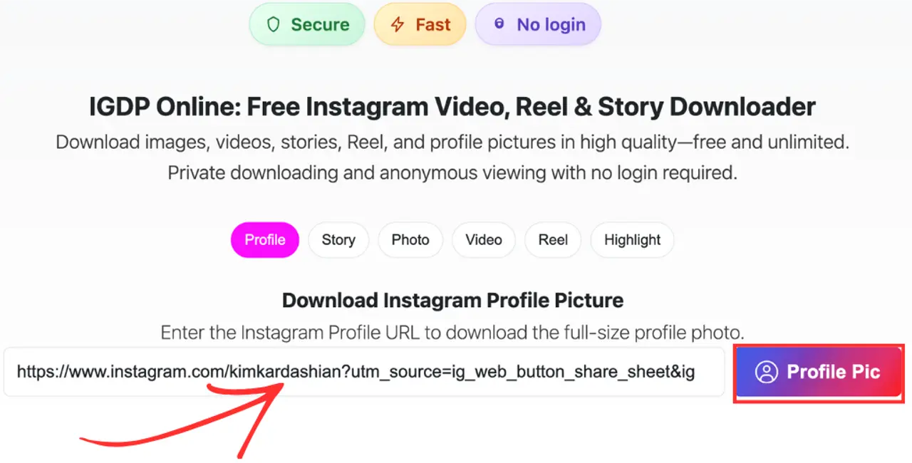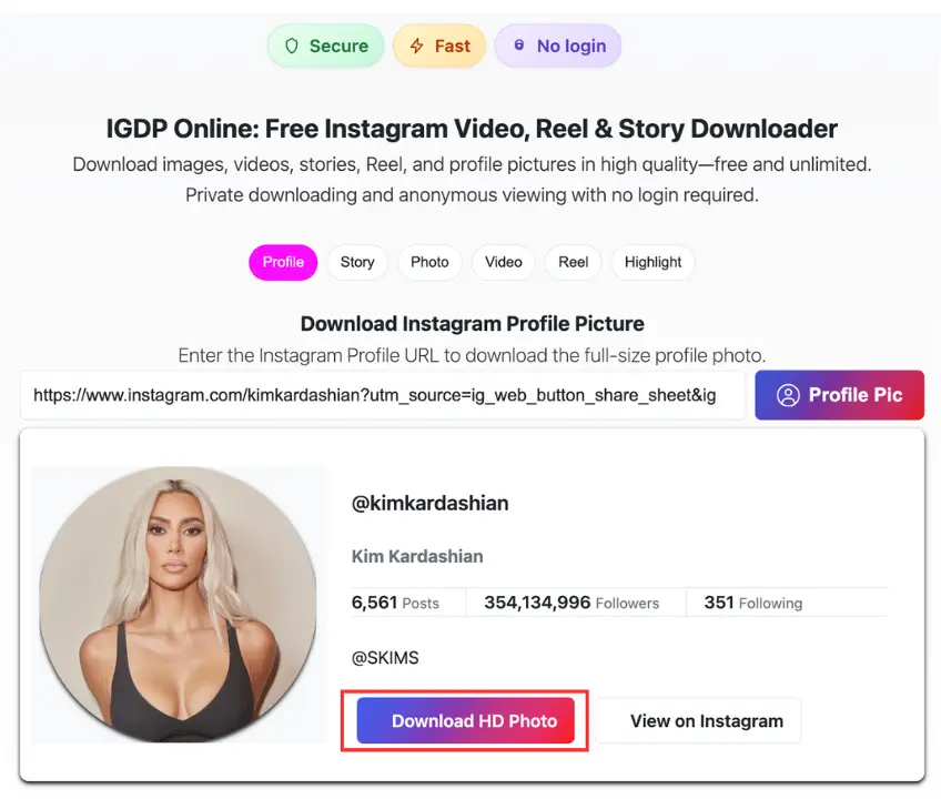Enter the Instagram Profile URL to download the full-size profile photo.